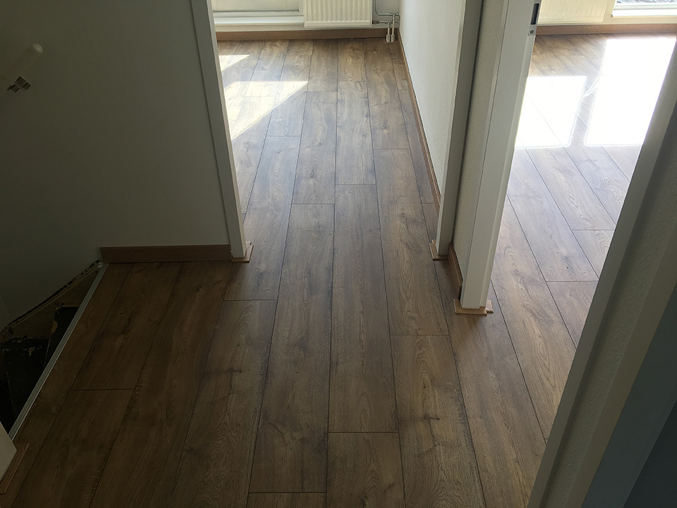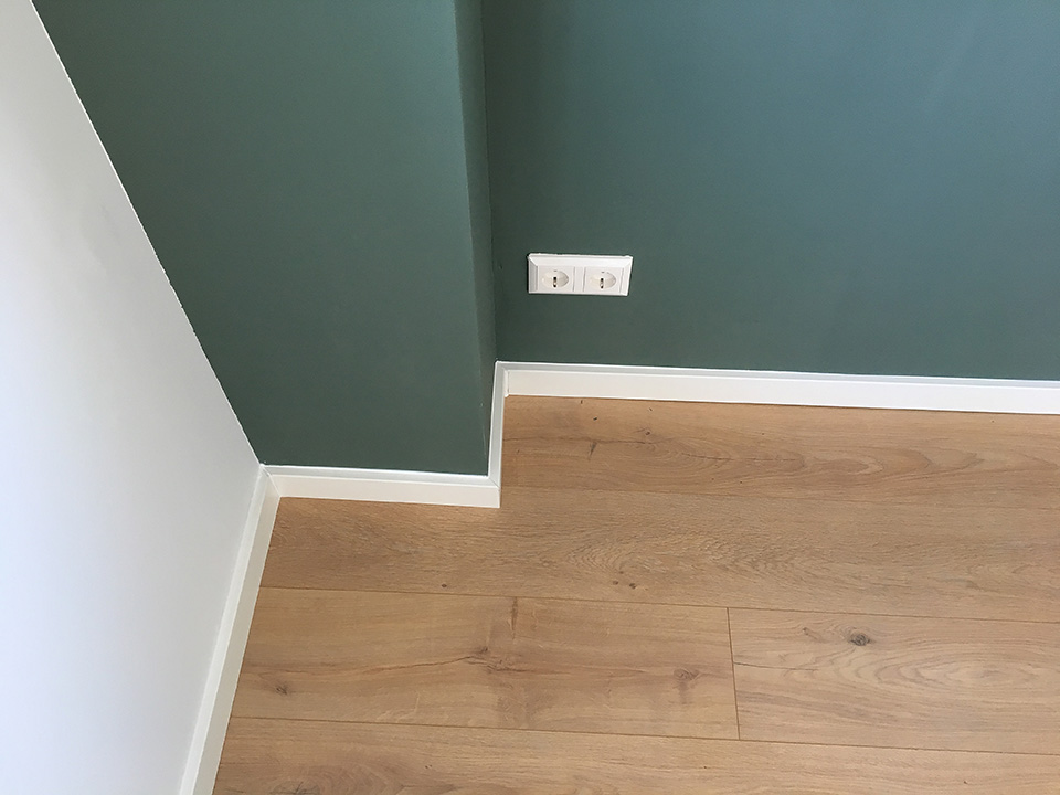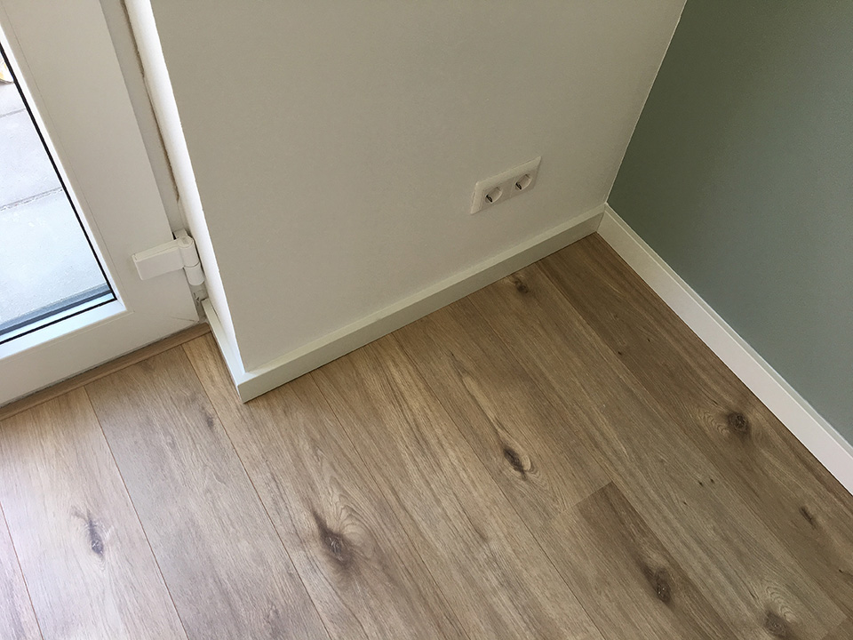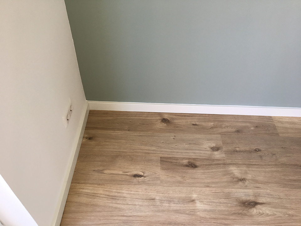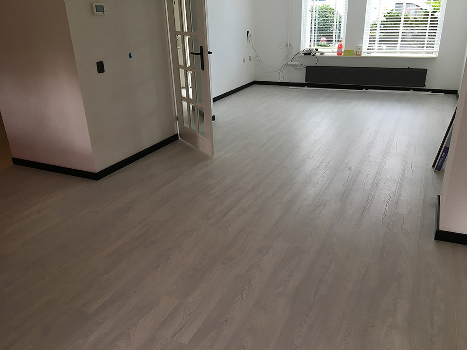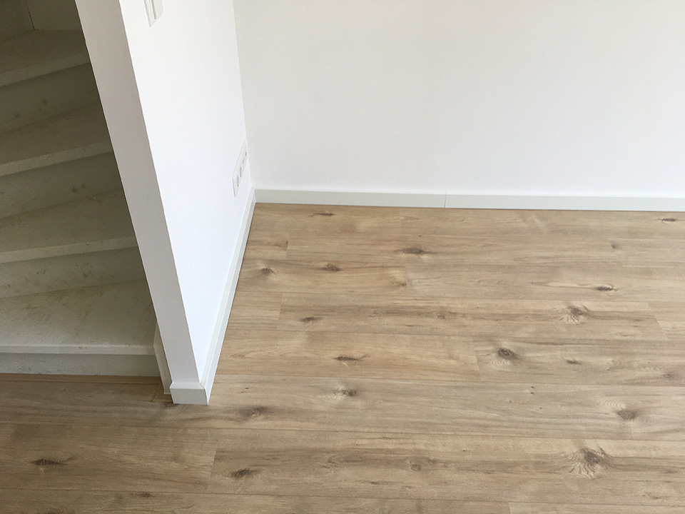 Uw vloer wordt snel en vakkundig door ons gelegd en netjes afgewerkt met plakplinten en-/of hoge plinten.
