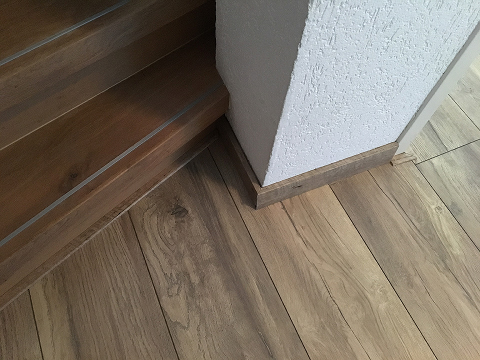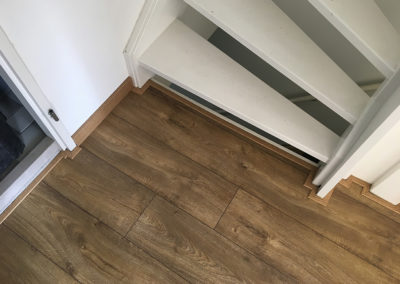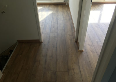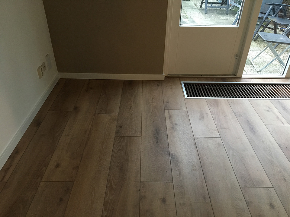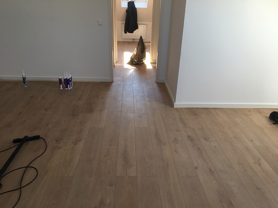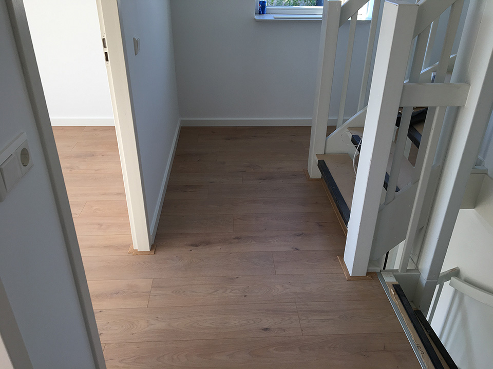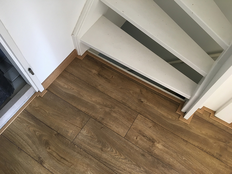Uw vloer wordt snel en vakkundig door ons gelegd en netjes afgewerkt met plakplinten en-/of hoge plinten.